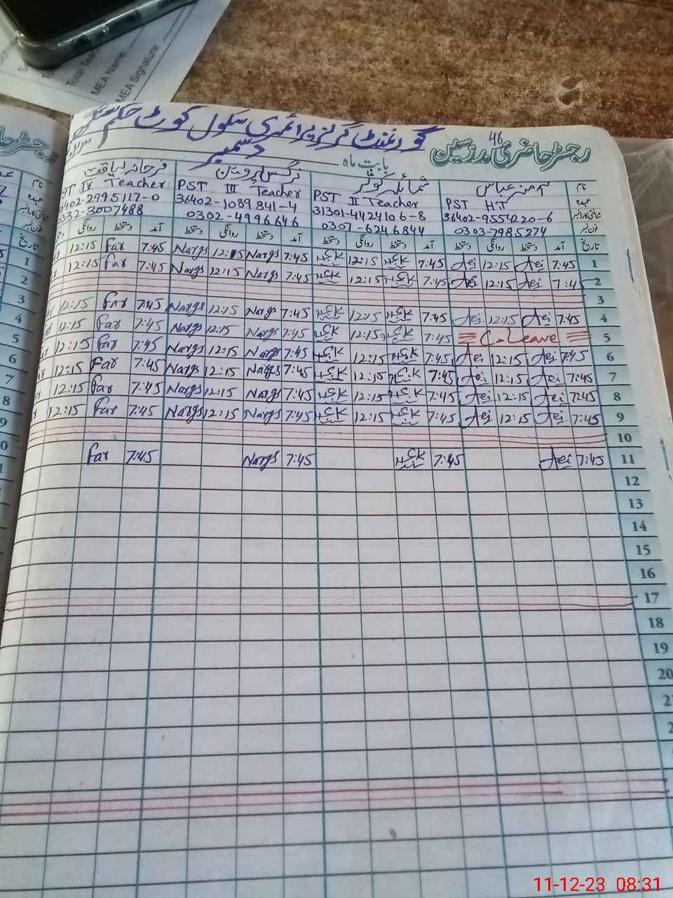 | Name: FA**** LI**** Designation: (School Headmaster's/Headmistress's) PST Phone/Cell Number: 03**** |