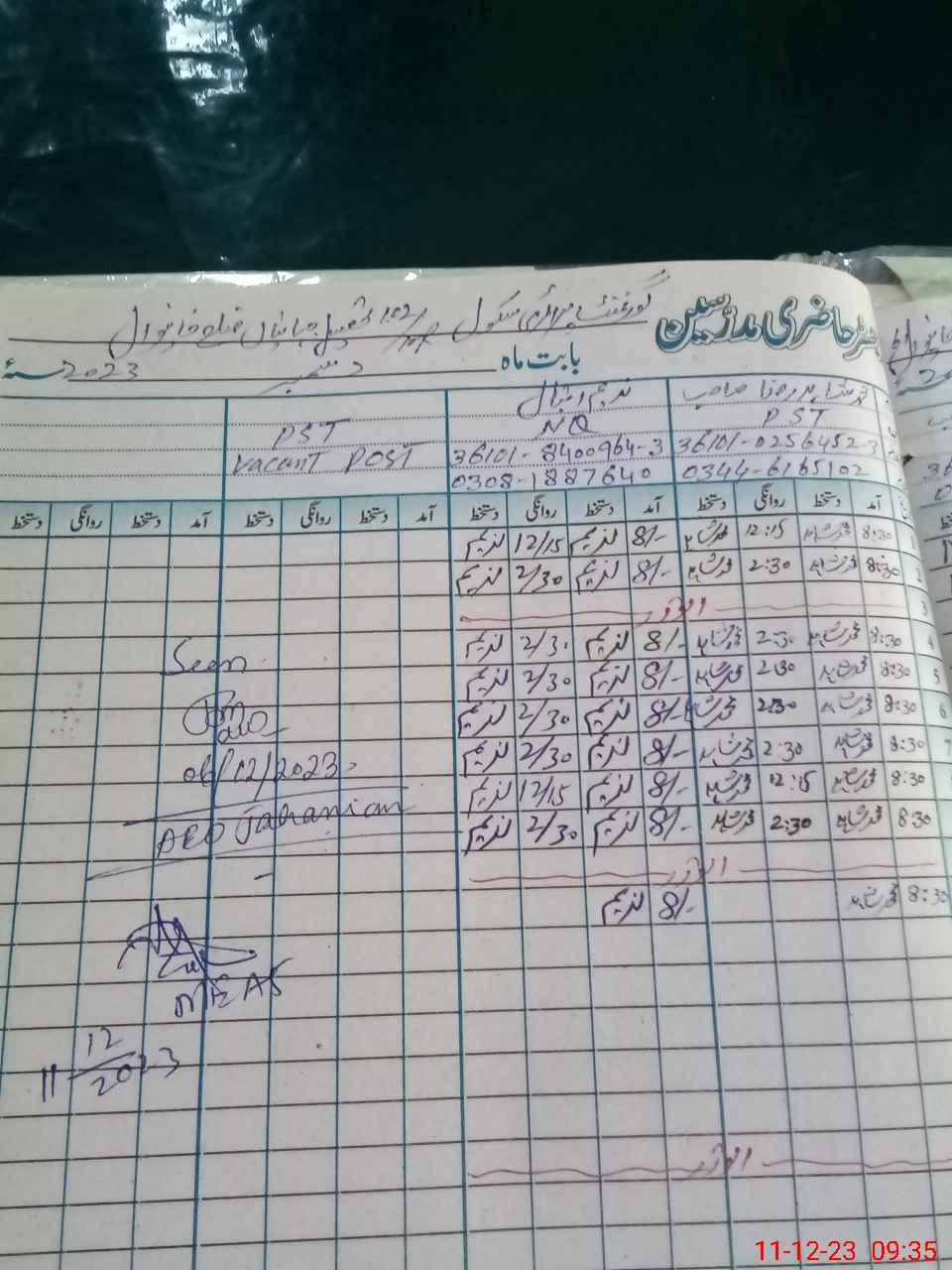 | Name: MAs**** Designation: (School Headmaster's/Headmistress's) PST Phone/Cell Number: 03**** |