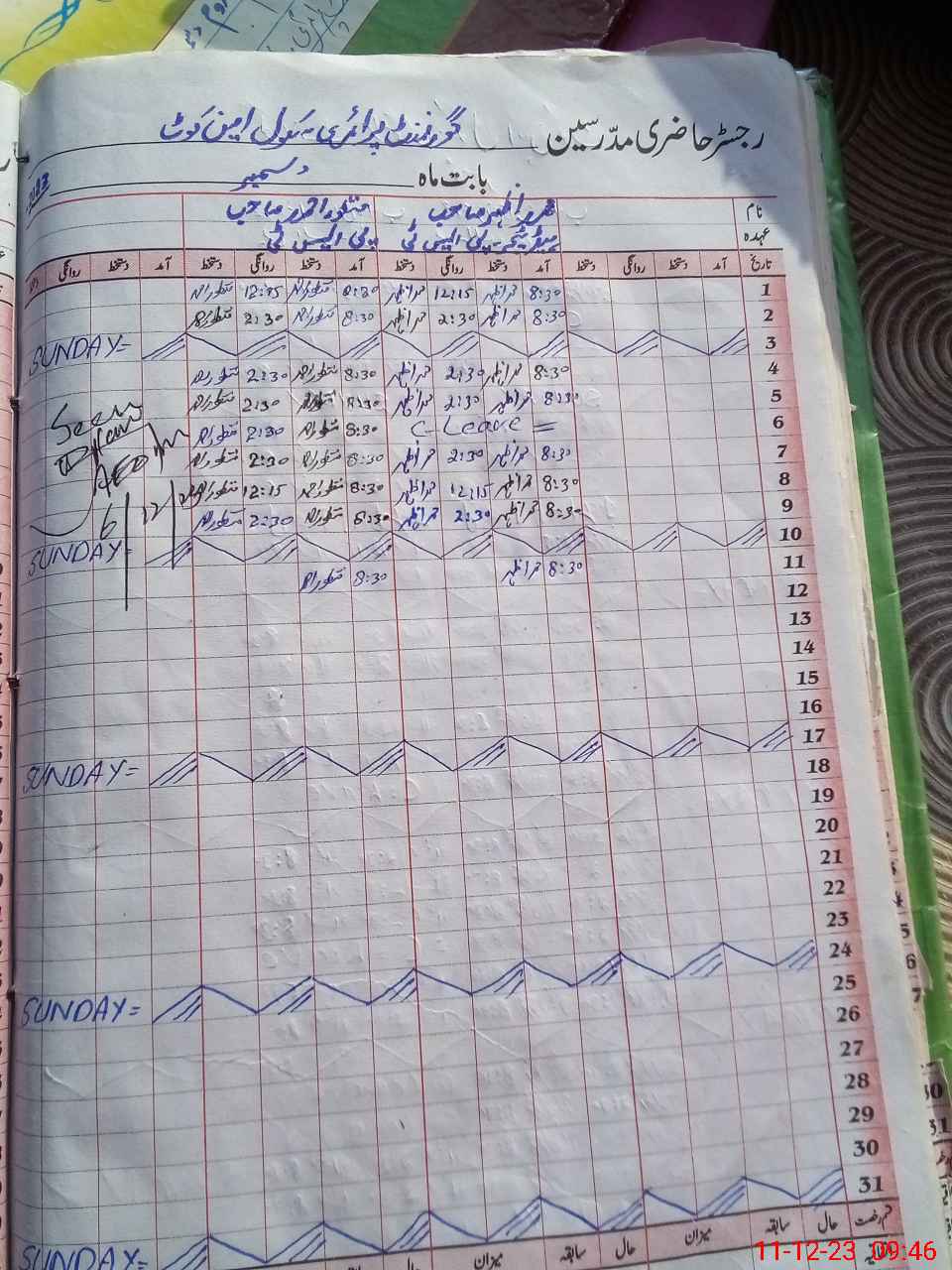 | CNIC | Full Name | Designation | R/C | Absence During Last Calender Month |