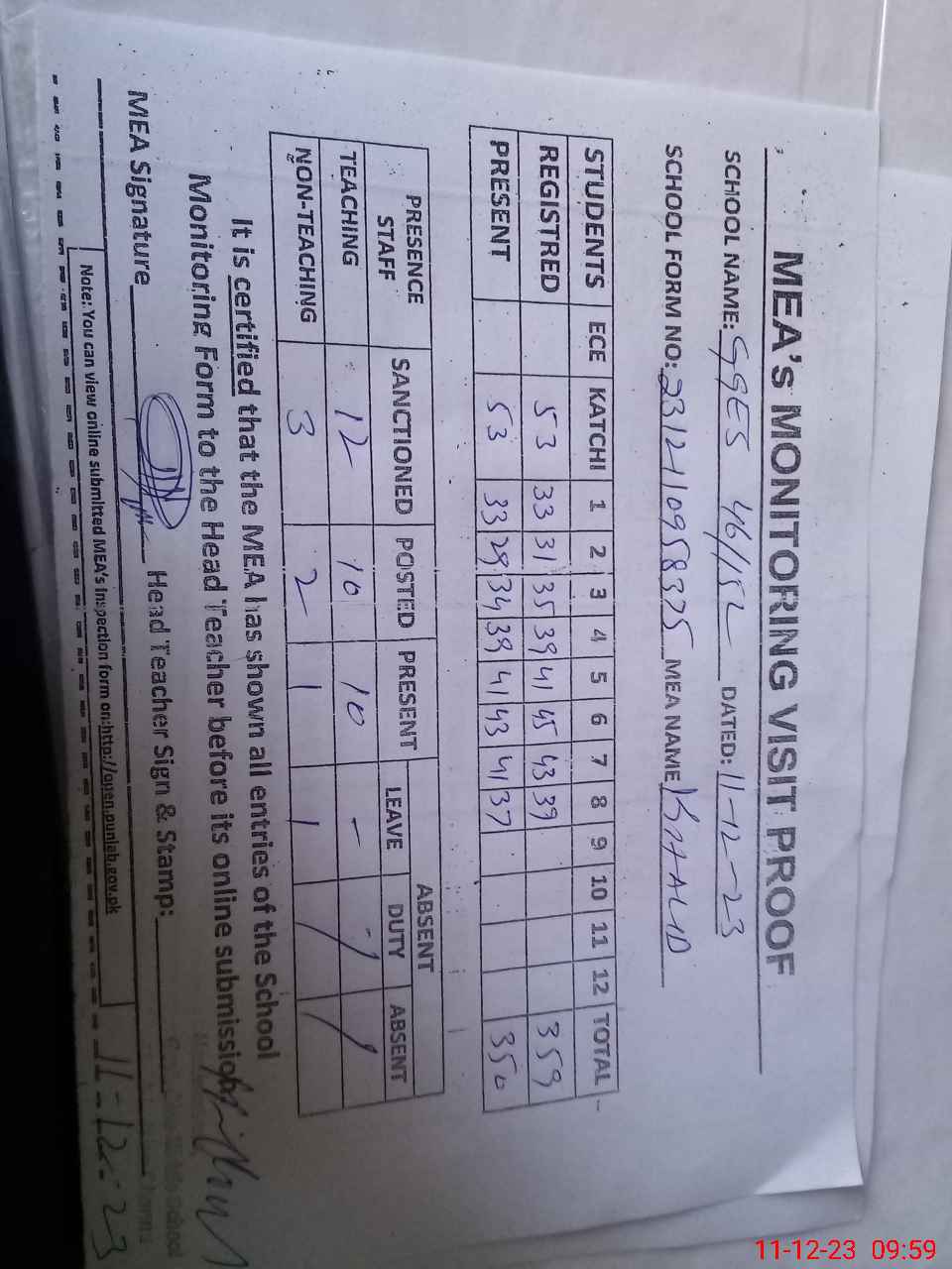| Monitoring Date: 11-12-2023 | Start Time: 11-12-2023 09:26 AM | End Time: 11-12-2023 10:00 AM | Name of MEA: Kh**** Me**** | |