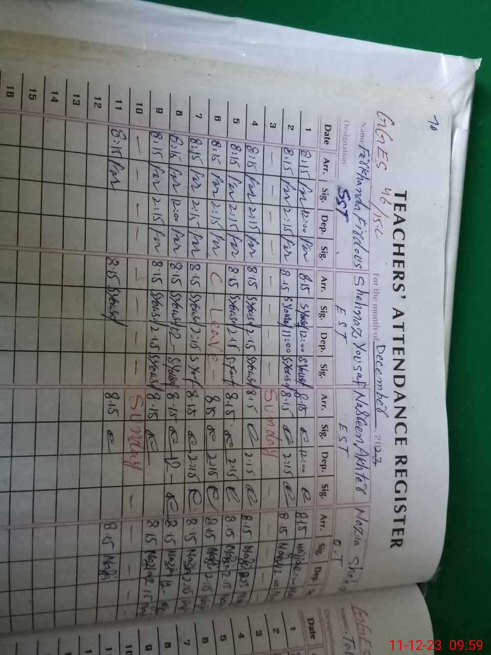 | Name: Fa**** Fi**** Designation: (School Headmaster's/Headmistress's) SST (G) Phone/Cell Number: 03**** |