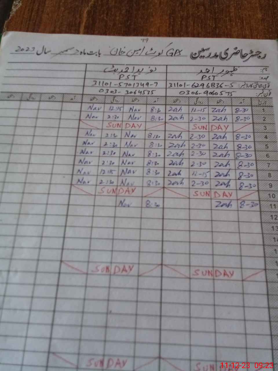 | CNIC | Full Name | Designation | R/C | Absence During Last Calender Month |