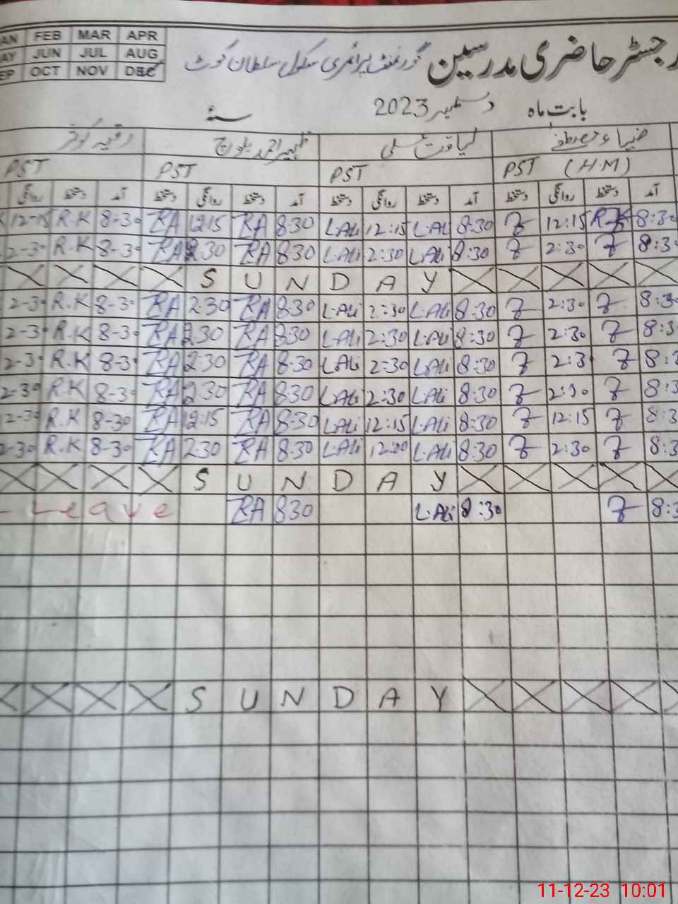 | CNIC | Full Name | Designation | R/C | Absence During Last Calender Month |