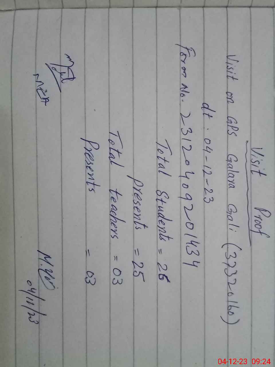 | Attendance Register | Head Teacher | MEA with School | Visit Proof |