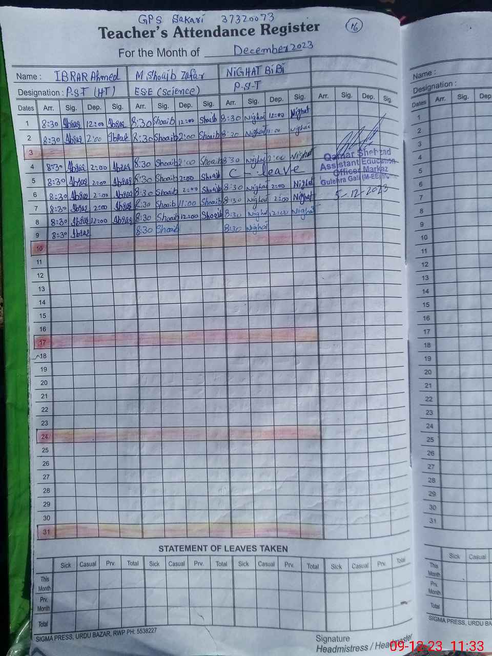 | Name: IB**** AH**** Designation: (School Headmaster's/Headmistress's) PTC/JV Phone/Cell Number: 03**** |