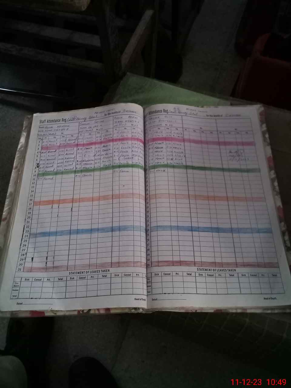 | CNIC | Full Name | Designation | R/C | Absence During Last Calender Month |