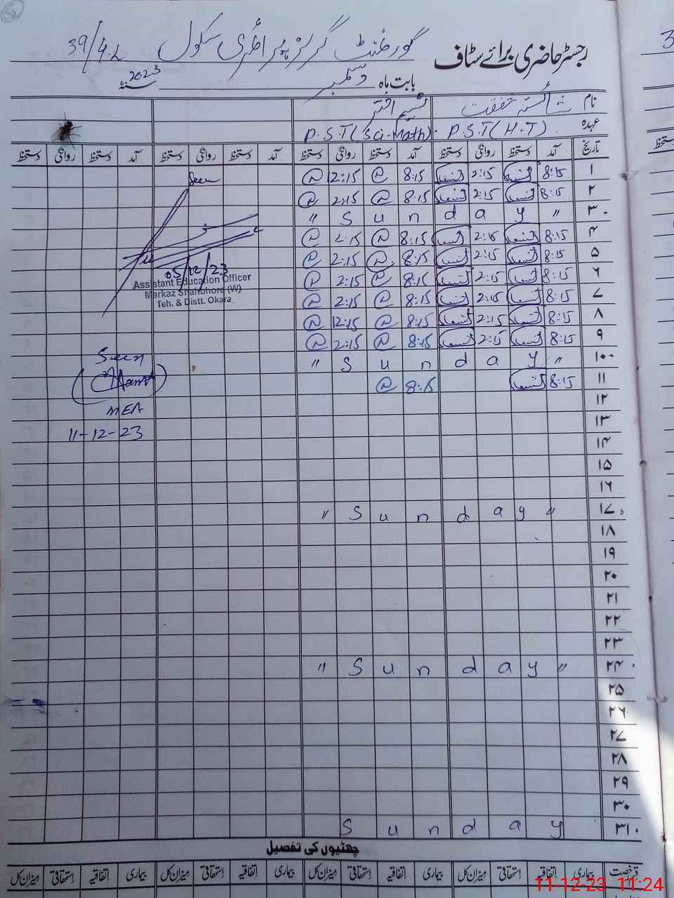 | Name: SH**** SH**** Designation: (School Headmaster's/Headmistress's) PST Phone/Cell Number: 03**** |