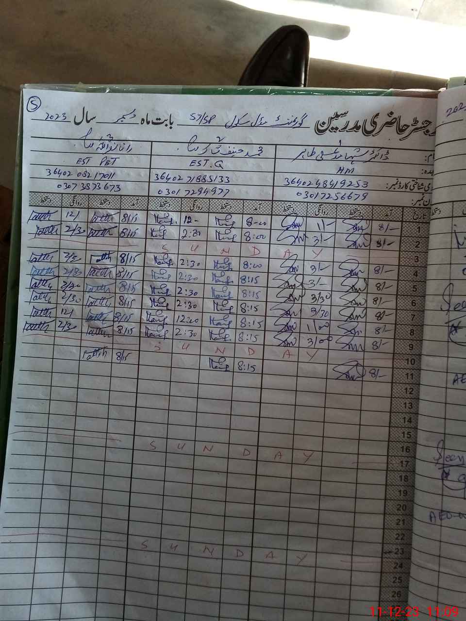 | Name: Ra**** Ak**** Designation: (School Headmaster's/Headmistress's) EST Phone/Cell Number: 03**** |