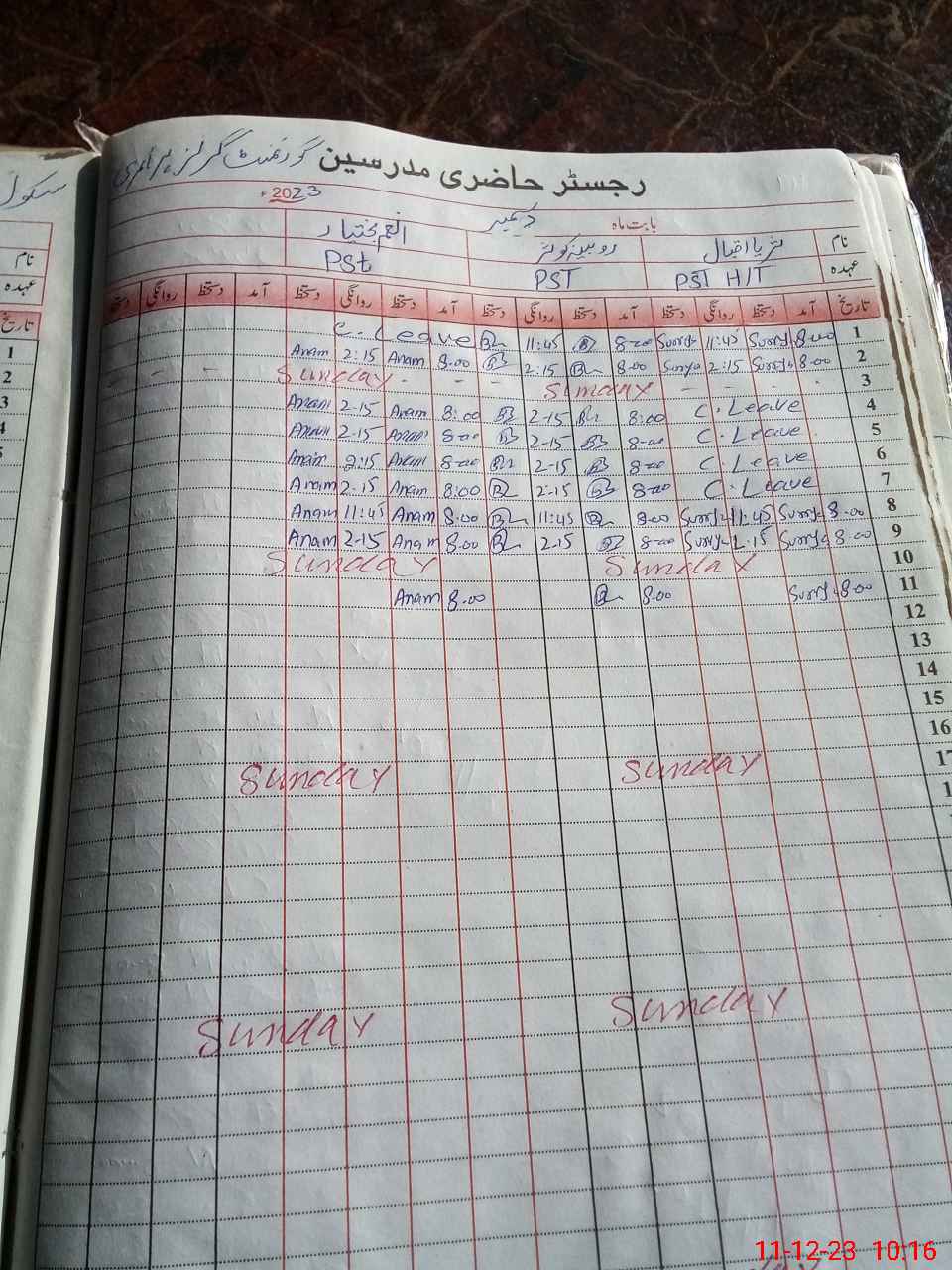 | CNIC | Full Name | Designation | R/C | Absence During Last Calender Month |