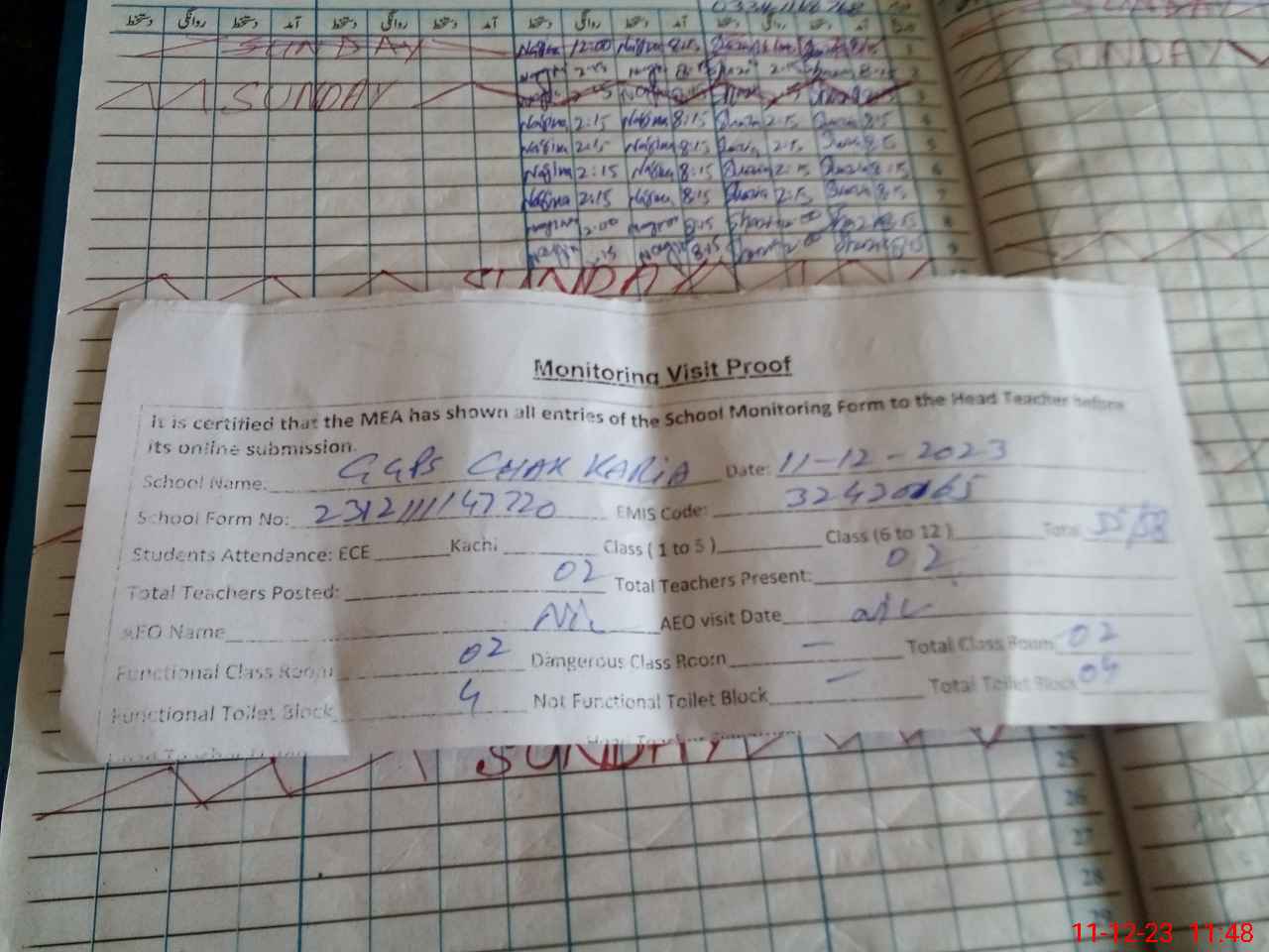 | EMIS Code: 32430165 | Name of School: GGPS CHAK KARIA | |||