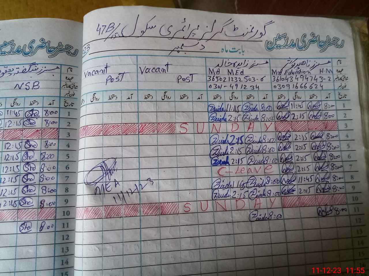 | Name: Za**** Kh**** Designation: (School Headmaster's/Headmistress's) PST Phone/Cell Number: 03**** |