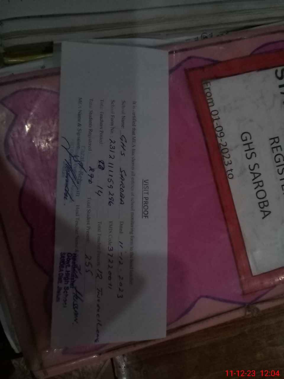 | EMIS Code: 37220011 | Name of School: GHS SAROBA | |||