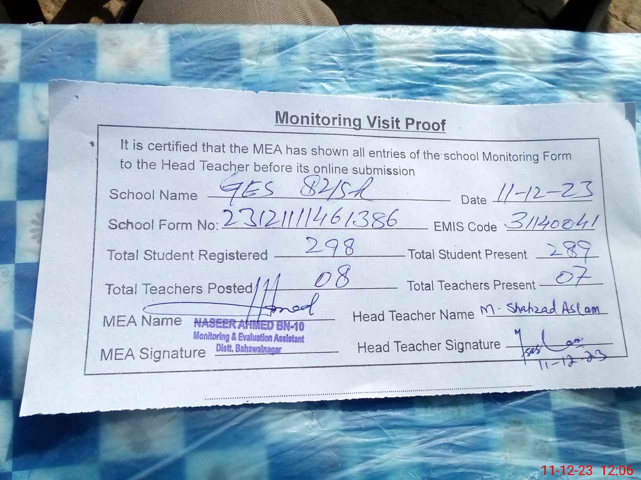 | EMIS Code: 31140041 | Name of School: GES CHAK 82/5-R | |||