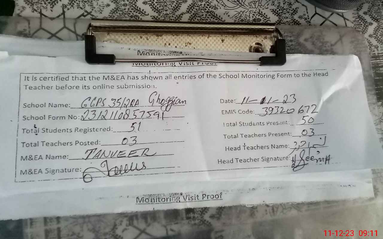 | EMIS Code: 39320672 | Name of School: GGPS CHAK NO. 35/2-RA GHOGHIAN WALA | |||