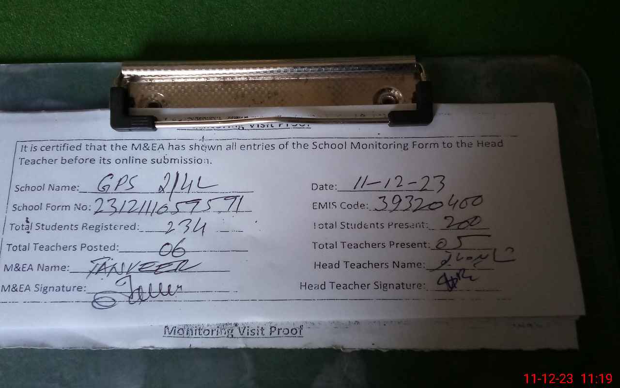 | EMIS Code: 39320400 | Name of School: GPS CHAK NO. 2/4-L | |||