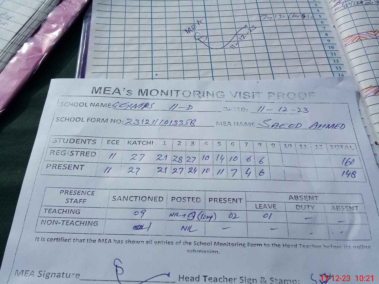 | Monitoring Date: 11-12-2023 | Start Time: 11-12-2023 09:33 AM | End Time: 11-12-2023 10:22 AM | Name of MEA: Sa**** Ah**** | |