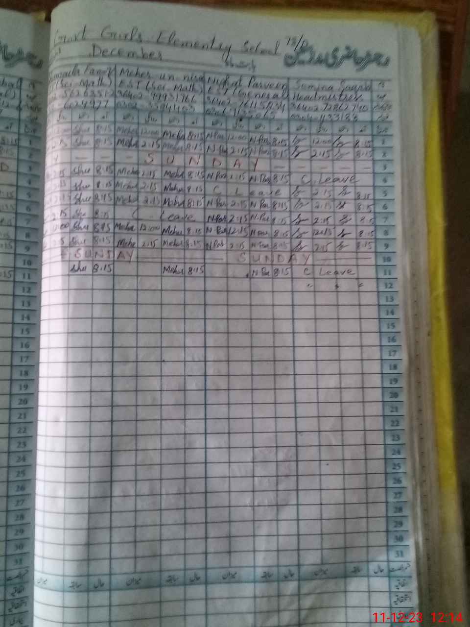 | 33**** | Me**** Ki**** | 1 | 0 | 0 | 11 | 0 | 0 | 0 | 0 | 0 | 0 | Absent (Un-Authorized) | |