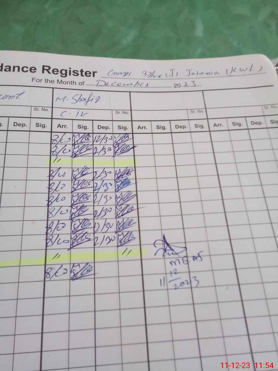 | CNIC | Full Name | Designation | R/C | Absence during last cal. month |