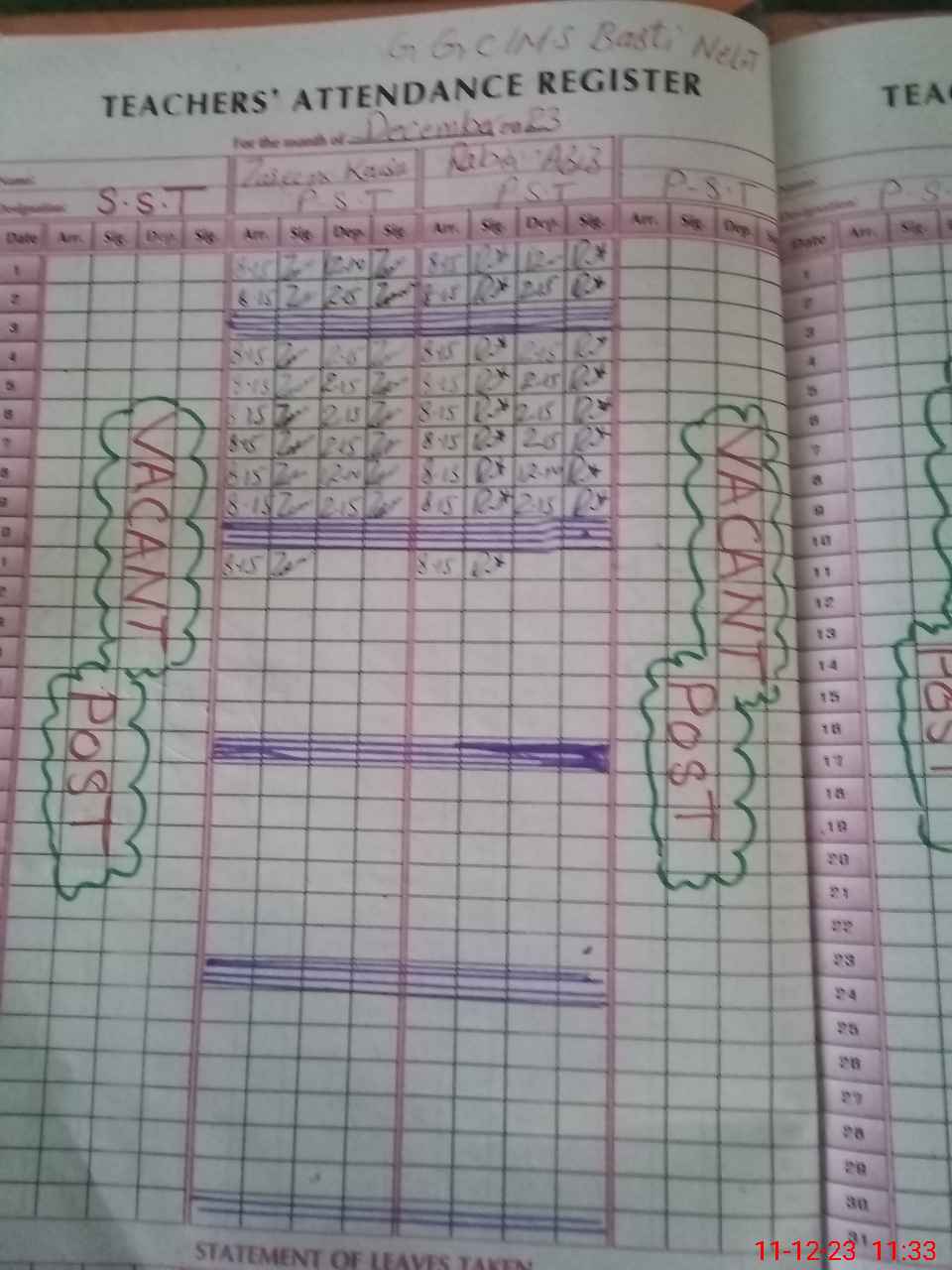 | CNIC | Full Name | Designation | R/C | Absence During Last Calender Month |