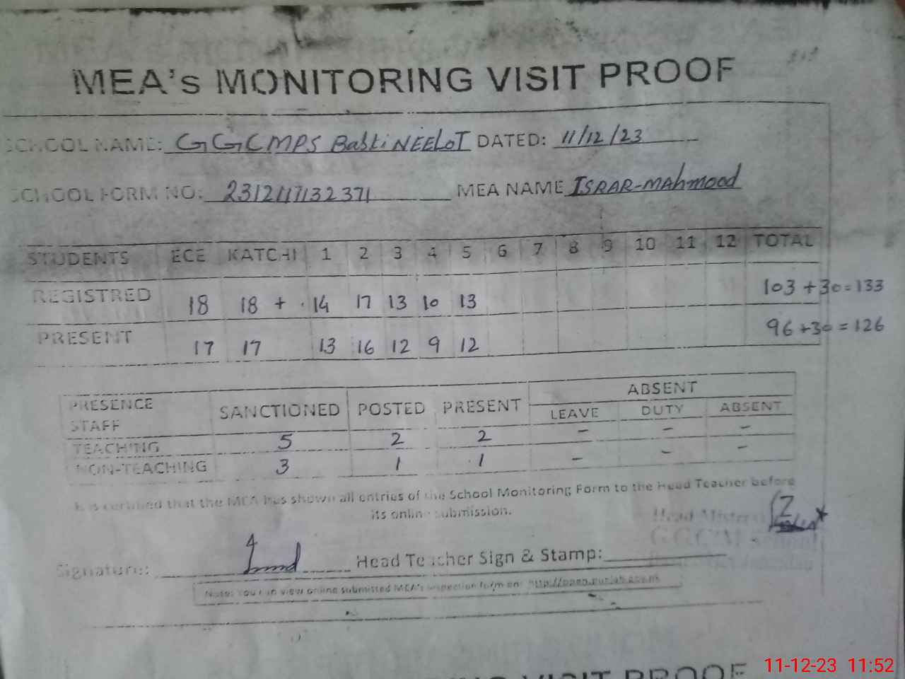 | EMIS Code: 36440550 | Name of School: GGCMS BASTI NEELOT JAHANIAN | |||
