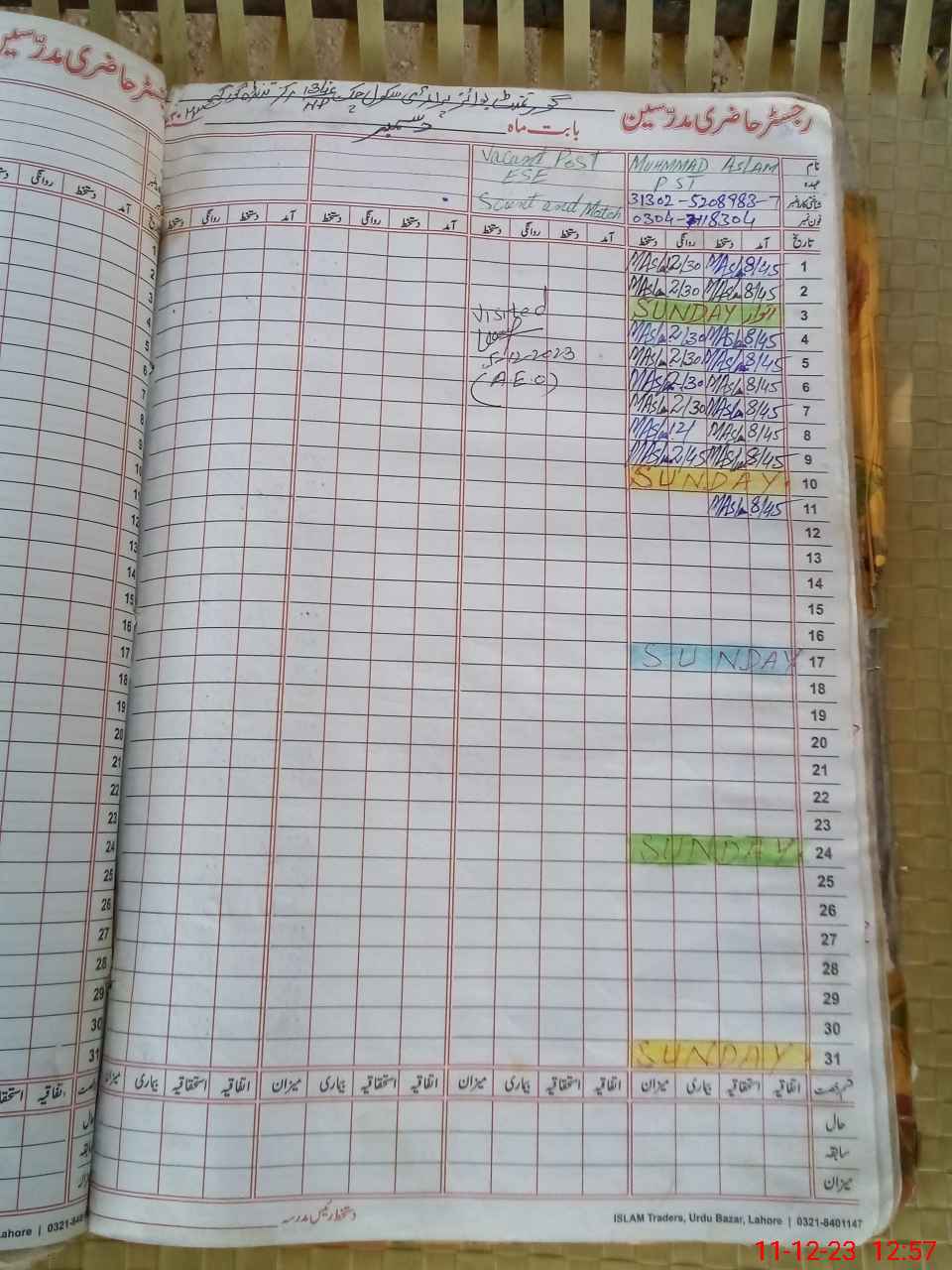 | Name: MU**** AS**** Designation: (School Headmaster's/Headmistress's) PST/PTC/JV Phone/Cell Number: 03**** |