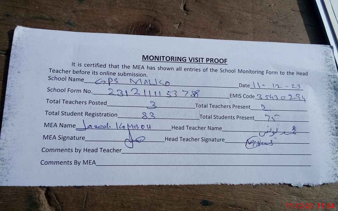 | EMIS Code: 35430294 | Name of School: GPS MALKOO | |||