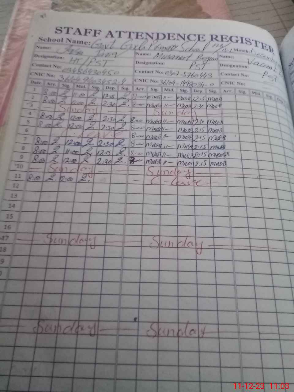 | Name: Iq**** Ta**** Designation: (School Headmaster's/Headmistress's) PST Phone/Cell Number: 03**** |