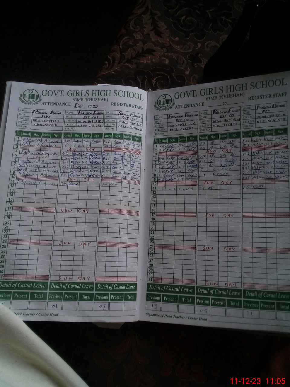 | Name: Ha**** Ha**** Ka**** Designation: (School Headmaster's/Headmistress's) Head Mistress Phone/Cell Number: 03**** |