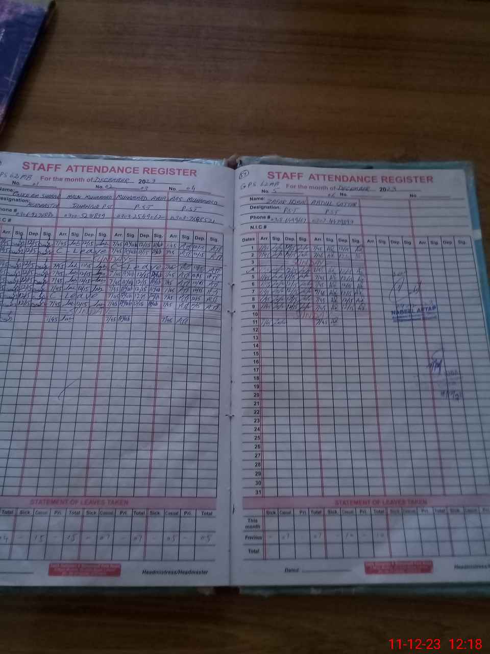| Name: GH**** SH**** Designation: (School Headmaster's/Headmistress's) PST Phone/Cell Number: 03**** |