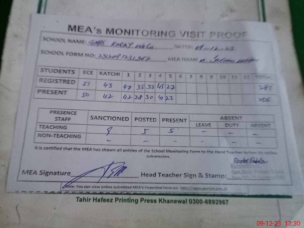 | EMIS Code: 36410383 | Name of School: GPS MODEL KOREY WALA, KABIRWALA | |||
