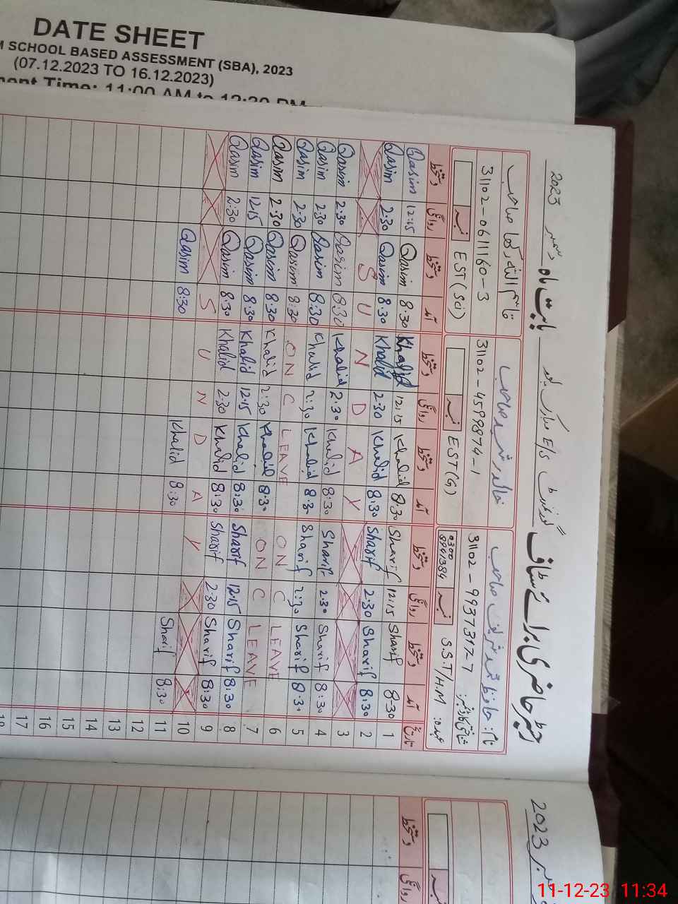 | Name: HA**** MU**** SH**** Designation: (School Headmaster's/Headmistress's) S.S.T.(Science) Phone/Cell Number: 03**** |