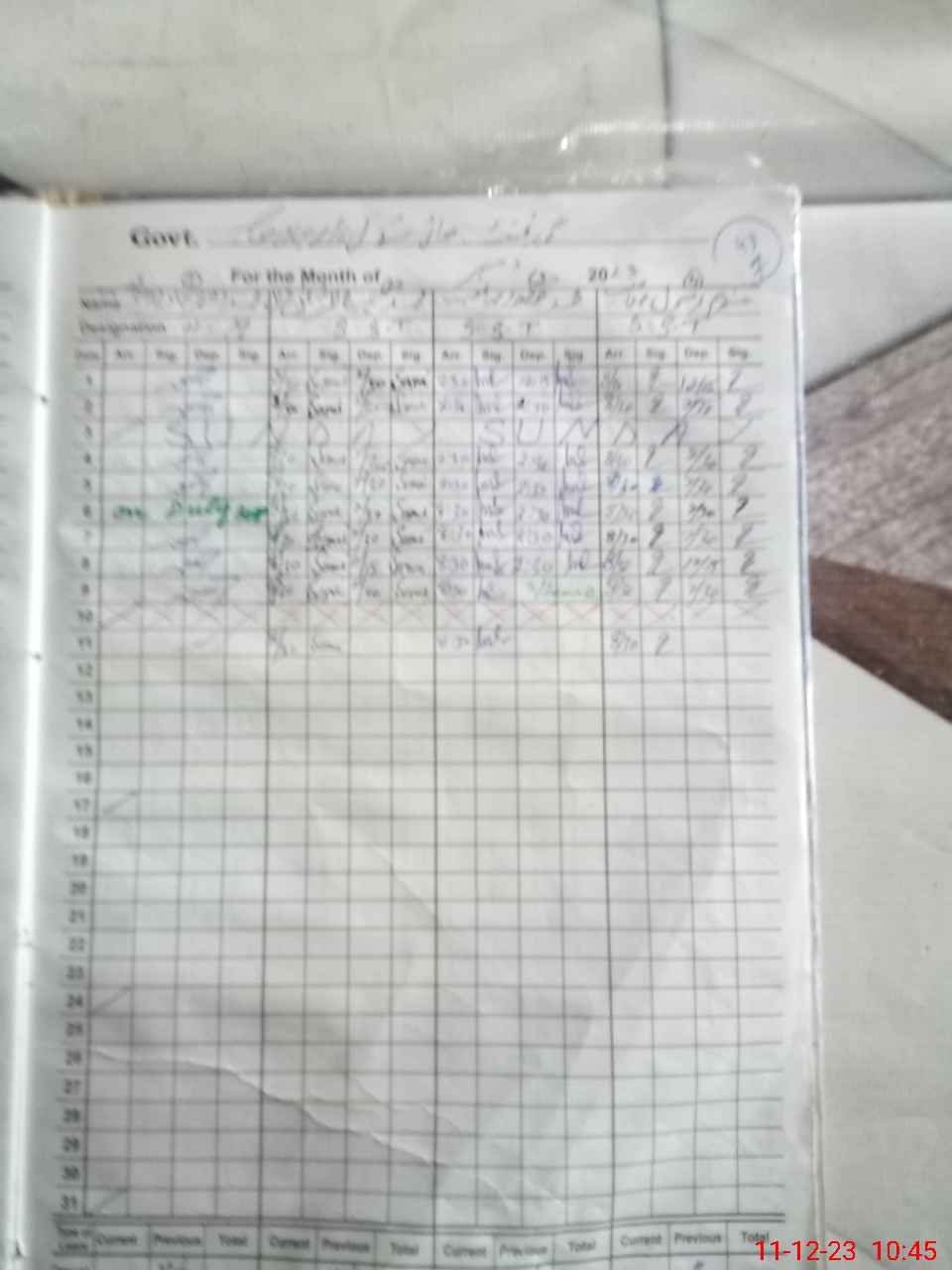 | CNIC | Full Name | Designation | R/C | Absence During Last Calender Month |