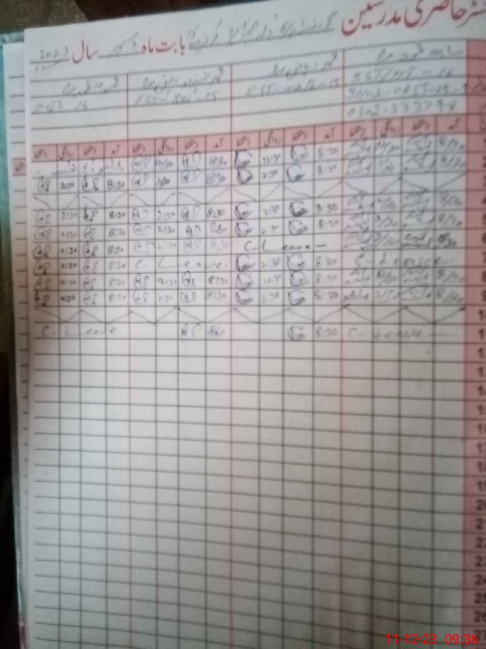 | 31**** | Mu**** Ma**** | 2 | 2 | 0 | 0 | 0 | 0 | 0 | 0 | 0 | 0 | 0 | Absent (Un-Authorized) |