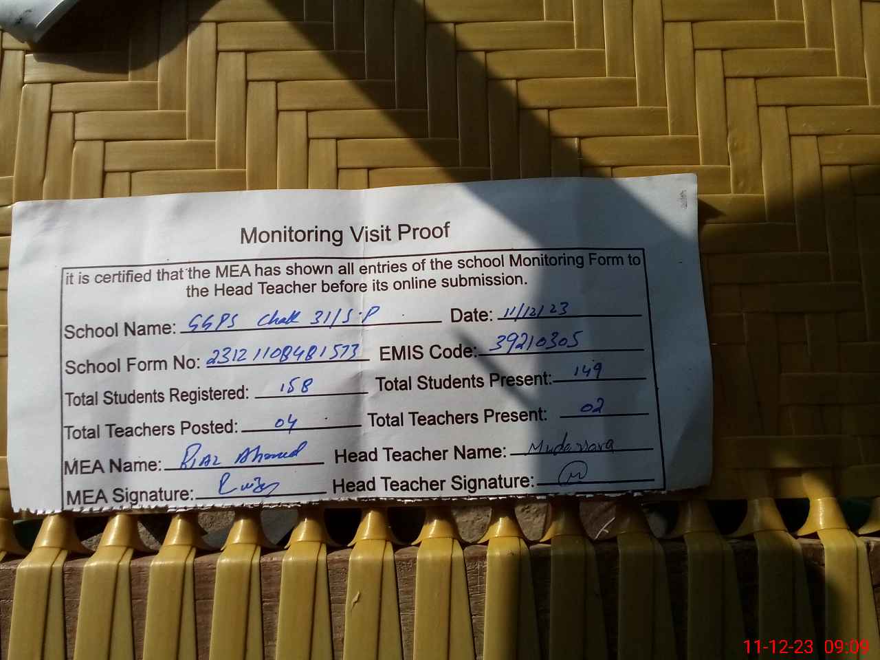 | EMIS Code: 39210305 | Name of School: GGPS CHAK NO.31 SP | |||