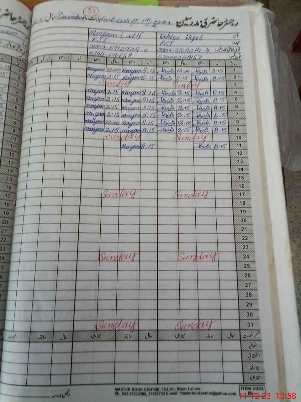 | CNIC | Full Name | Designation | R/C | Absence During Last Calender Month |