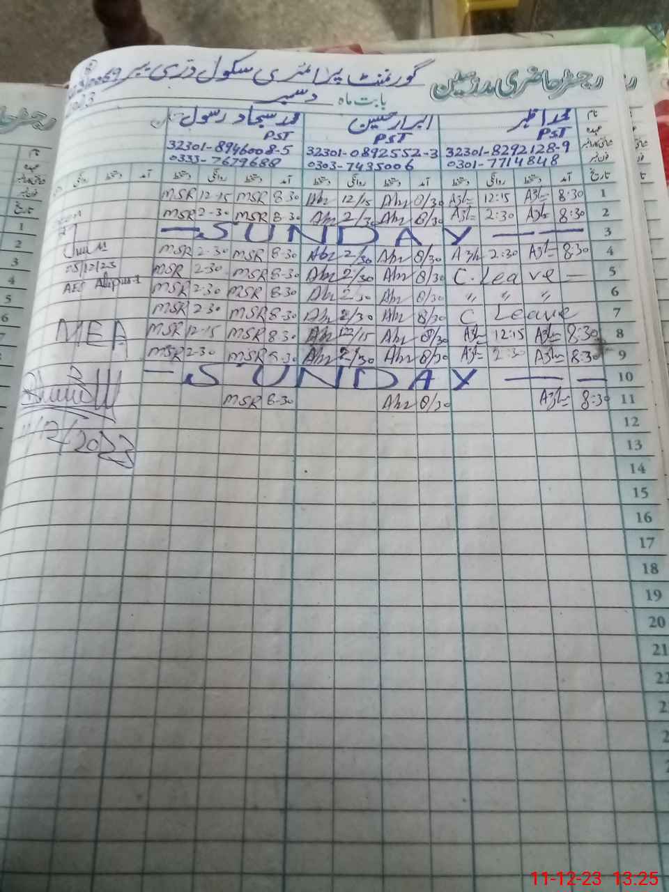| Name: MU**** AZ**** Designation: (School Headmaster's/Headmistress's) PST Phone/Cell Number: 03**** |