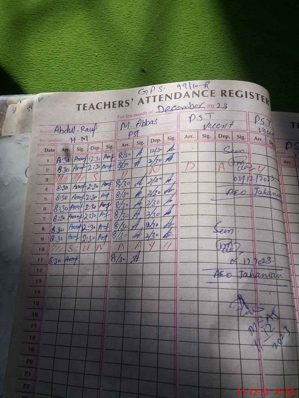 | Name: Ab**** Ra**** Designation: (School Headmaster's/Headmistress's) PST Phone/Cell Number: 03**** |