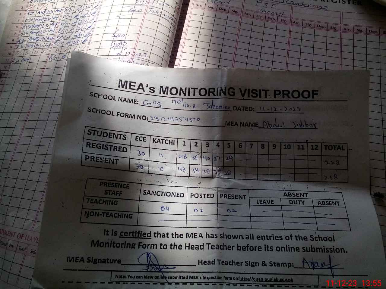| EMIS Code: 36440305 | Name of School: GPS 99/10-R, JAHANIAN | |||