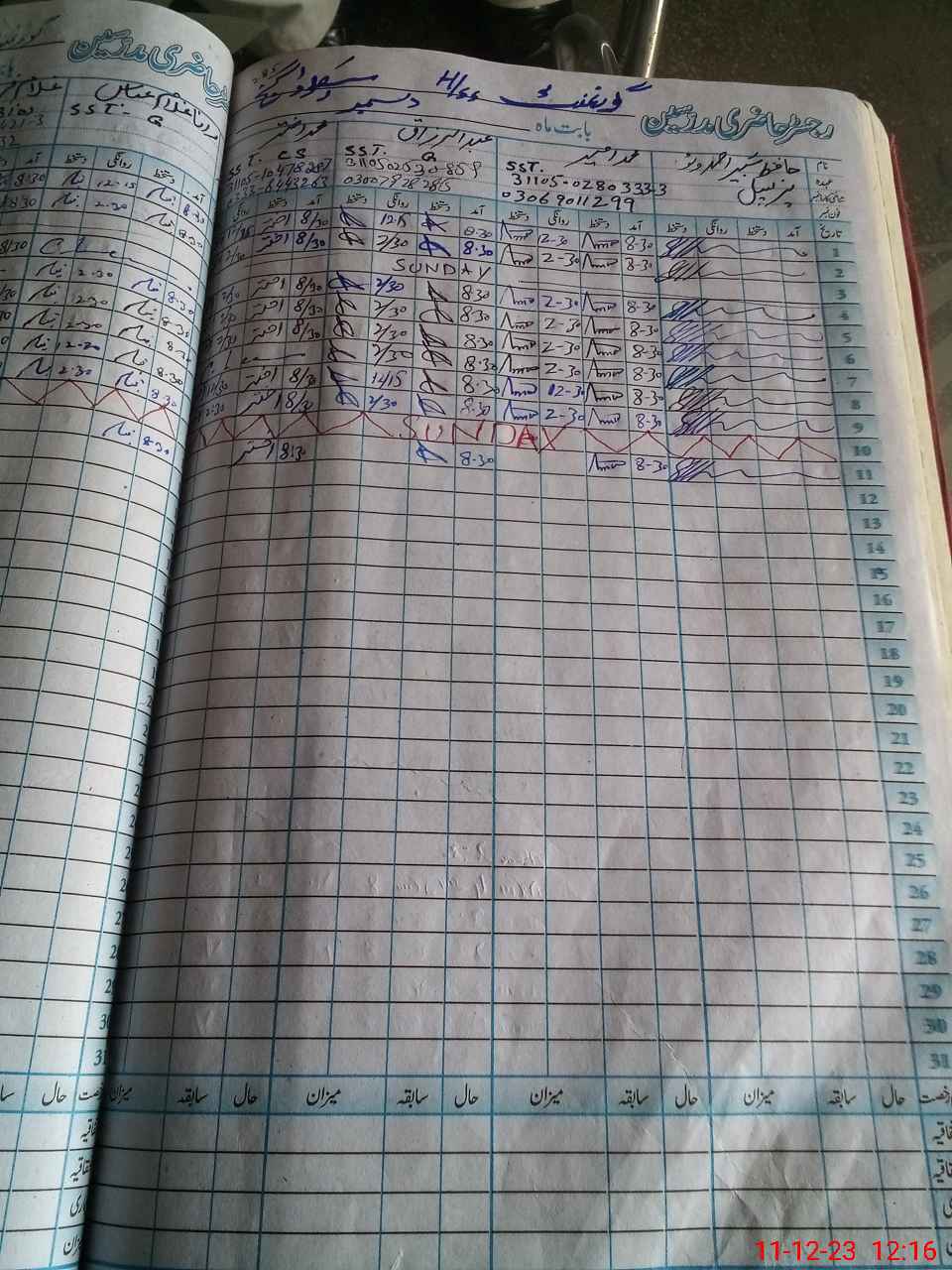 | CNIC | Full Name | Designation | R/C | Absence During Last Calender Month |