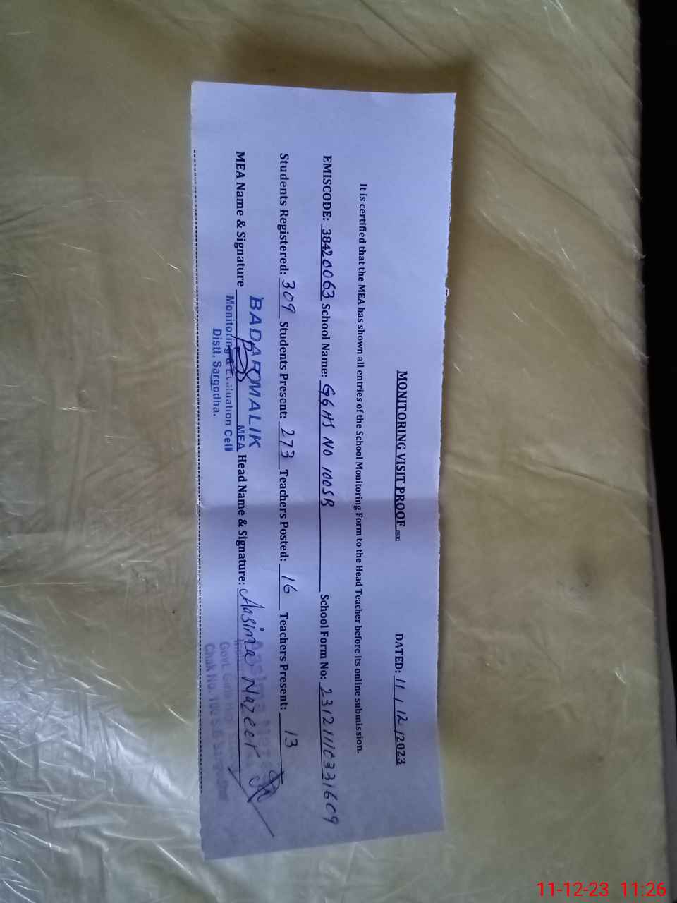 | EMIS Code: 38420063 | Name of School: GGHS CHAK NO.100 SB | |||