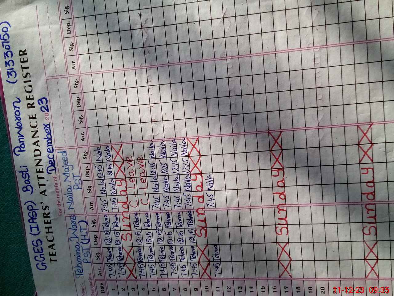 | CNIC | Full Name | Designation | R/C | Absence During Last Calender Month |