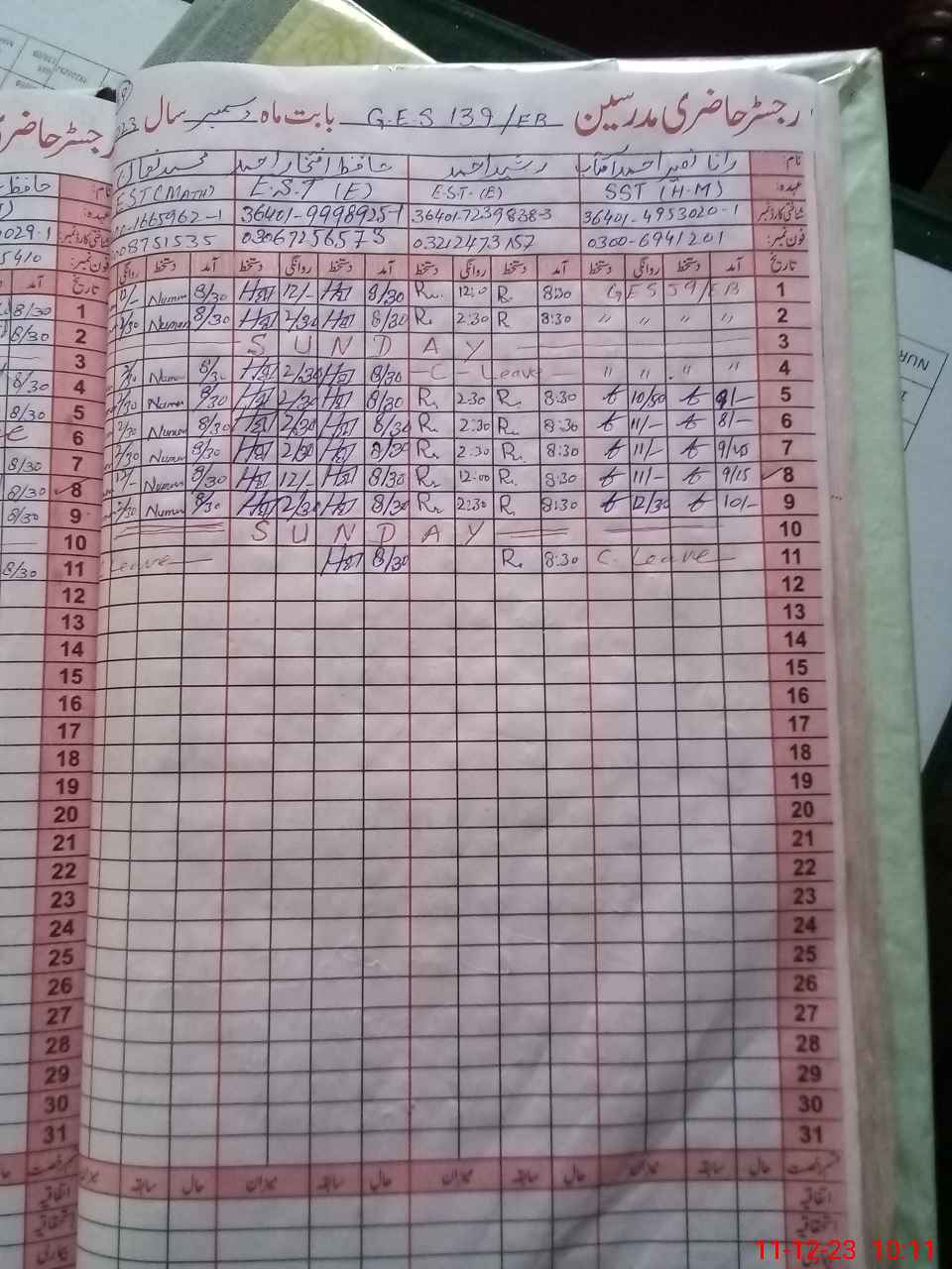 | Name: RA**** NA**** AH**** AF**** Designation: (School Headmaster's/Headmistress's) SST (SCIENCE) Phone/Cell Number: 03**** |