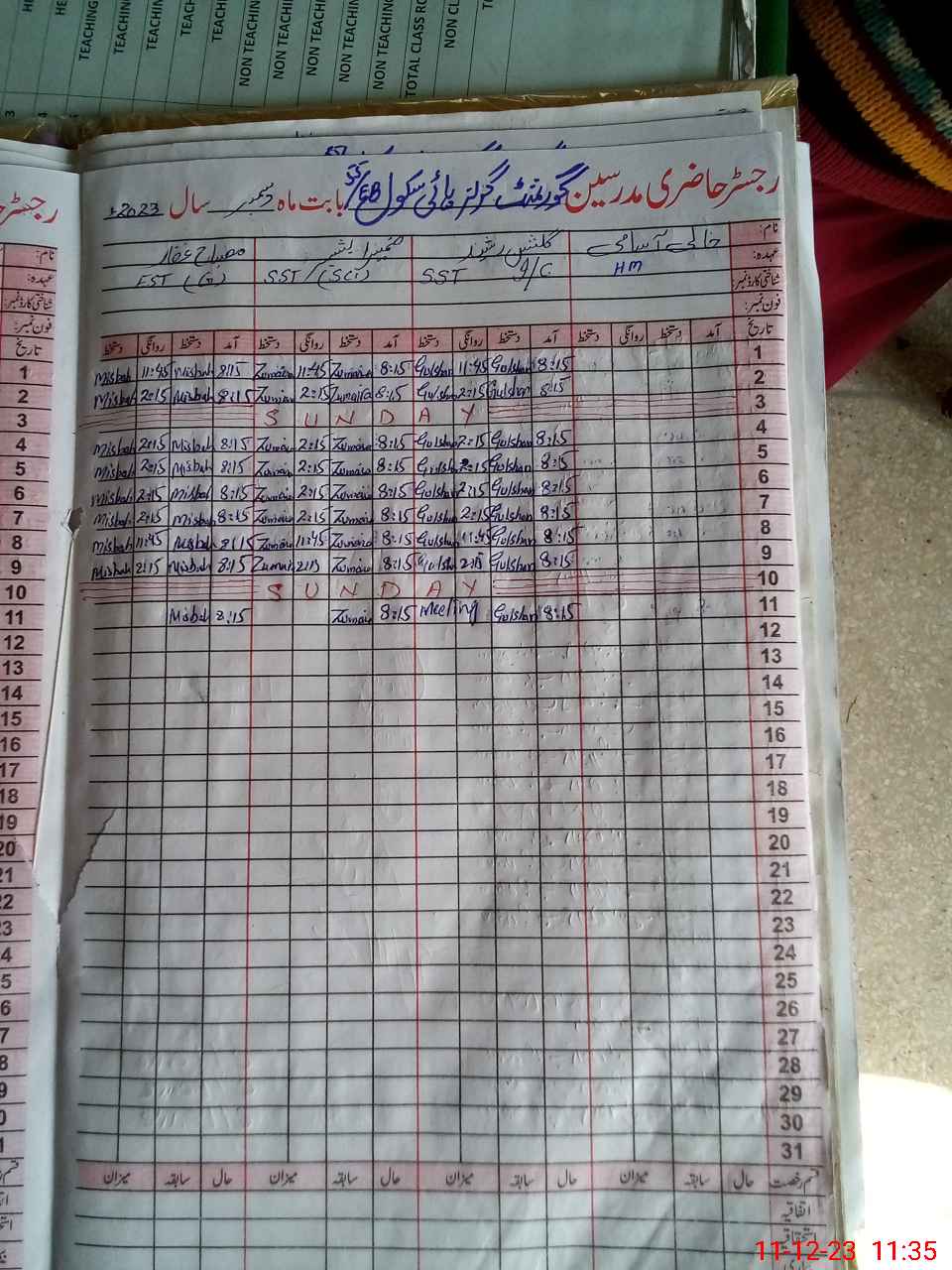 | Name: ZU**** BA**** Designation: (School Headmaster's/Headmistress's) S.S.T.(Sc.) Phone/Cell Number: 03**** |