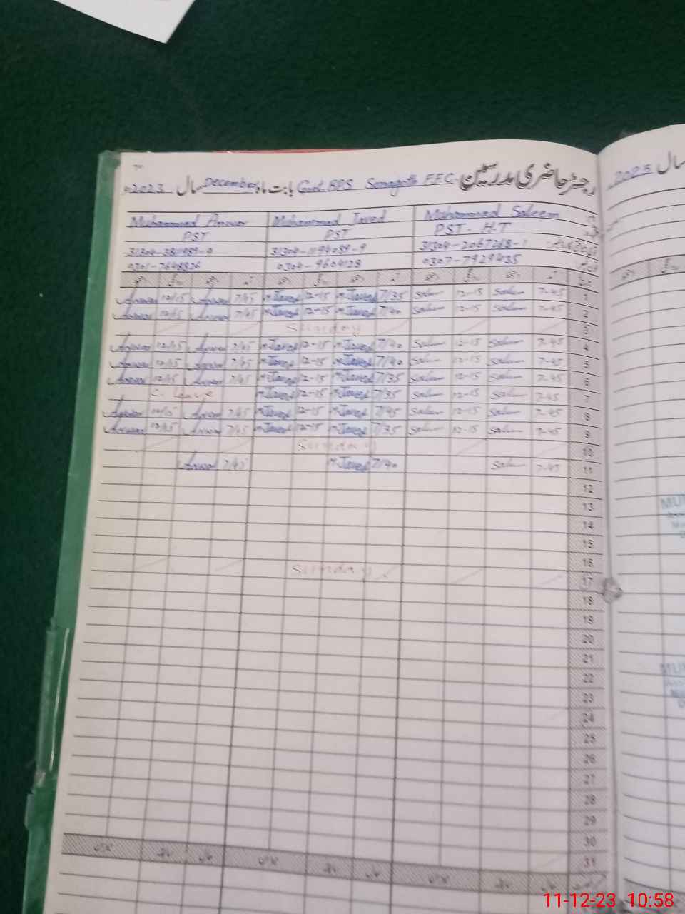 | Name: M.Sa**** Designation: (School Headmaster's/Headmistress's) PST/PTC/JV Phone/Cell Number: 03**** |