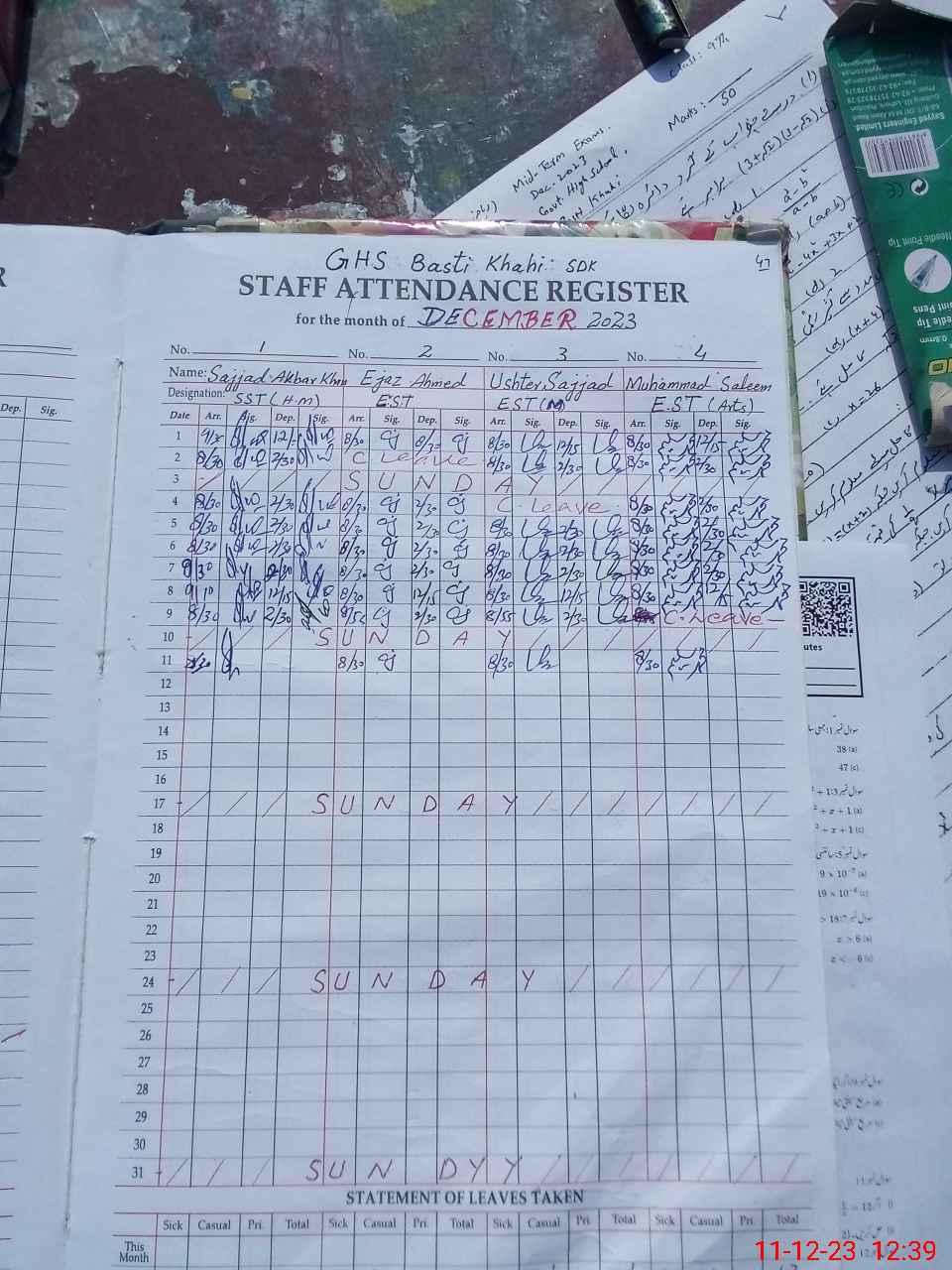 | Attendance Register | Head Teacher | MEA with School | Visit Proof |
