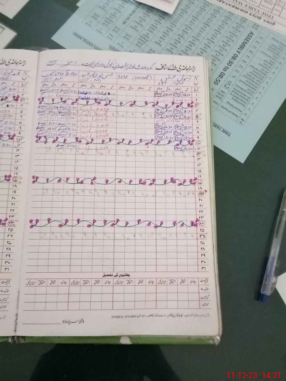 | CNIC | Full Name | Designation | R/C | Absence During Last Calender Month |