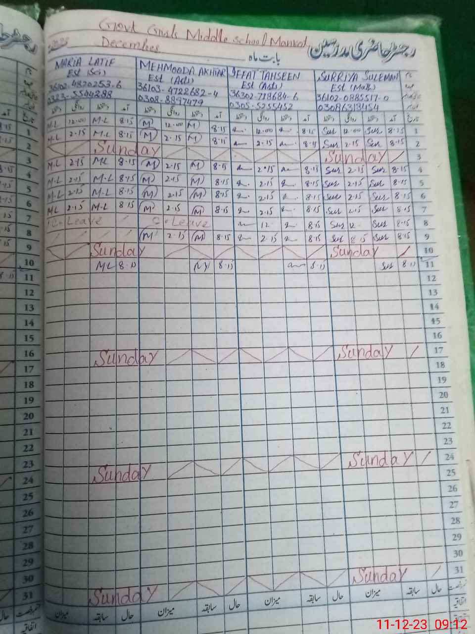 | Name: NO**** IQ**** Designation: (School Headmaster's/Headmistress's) SST Phone/Cell Number: 03**** |