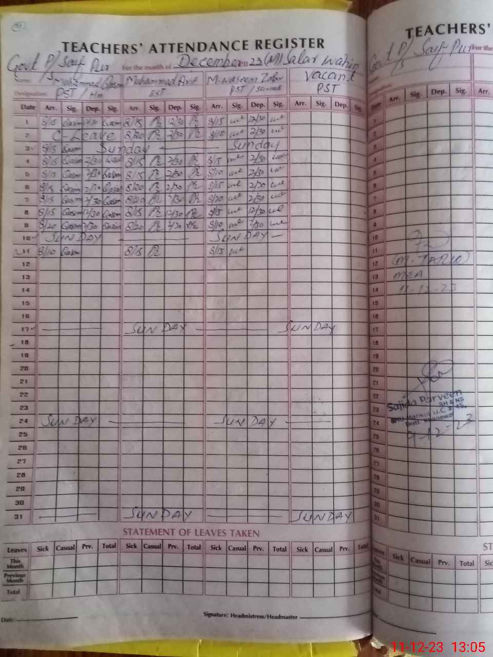 | Name: Mo**** Wa**** Za**** Designation: (School Headmaster's/Headmistress's) PTC/JV Phone/Cell Number: 03**** |