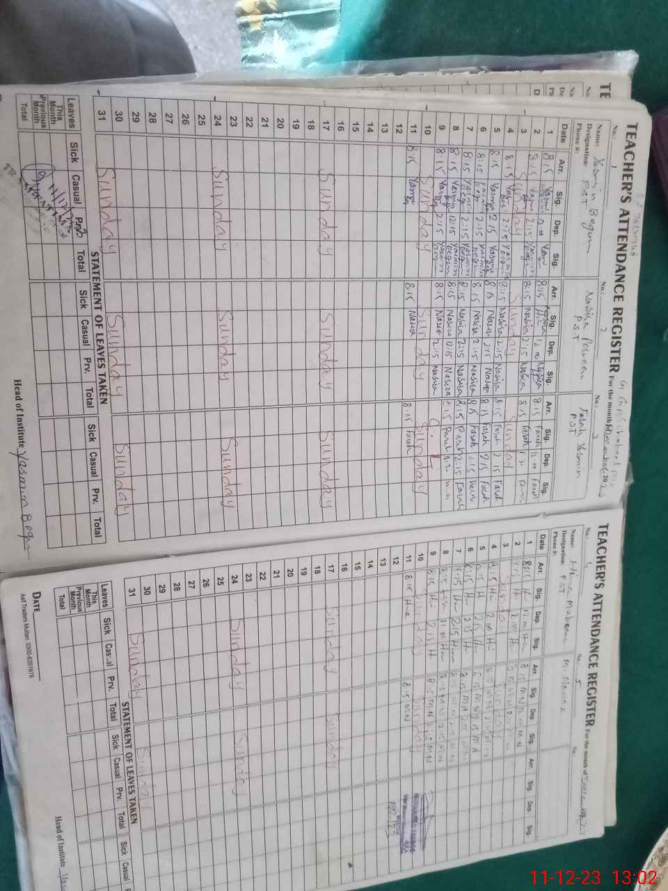 | CNIC | Full Name | Designation | R/C | Absence During Last Calender Month |