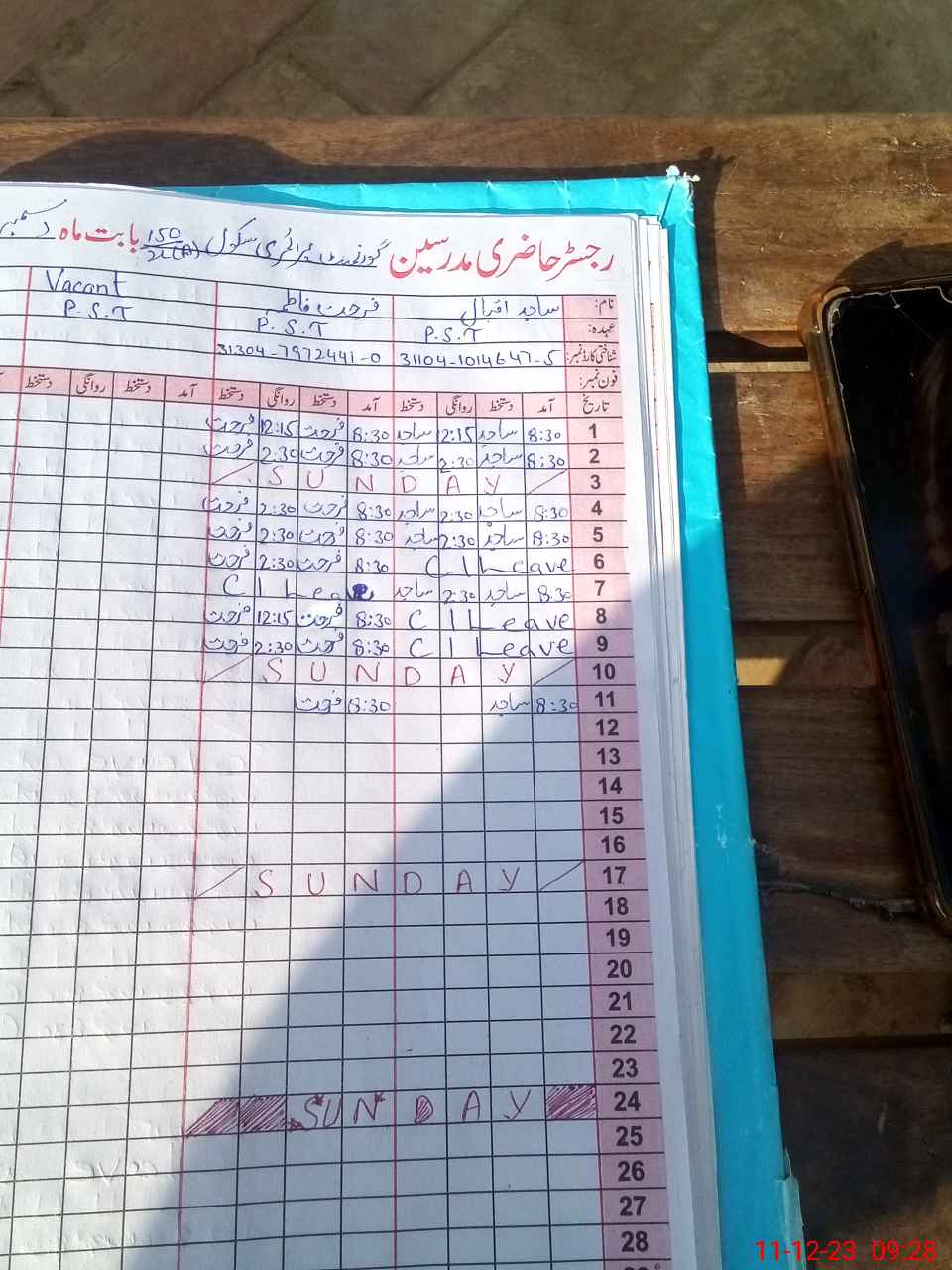 | CNIC | Full Name | Designation | R/C | Absence During Last Calender Month |